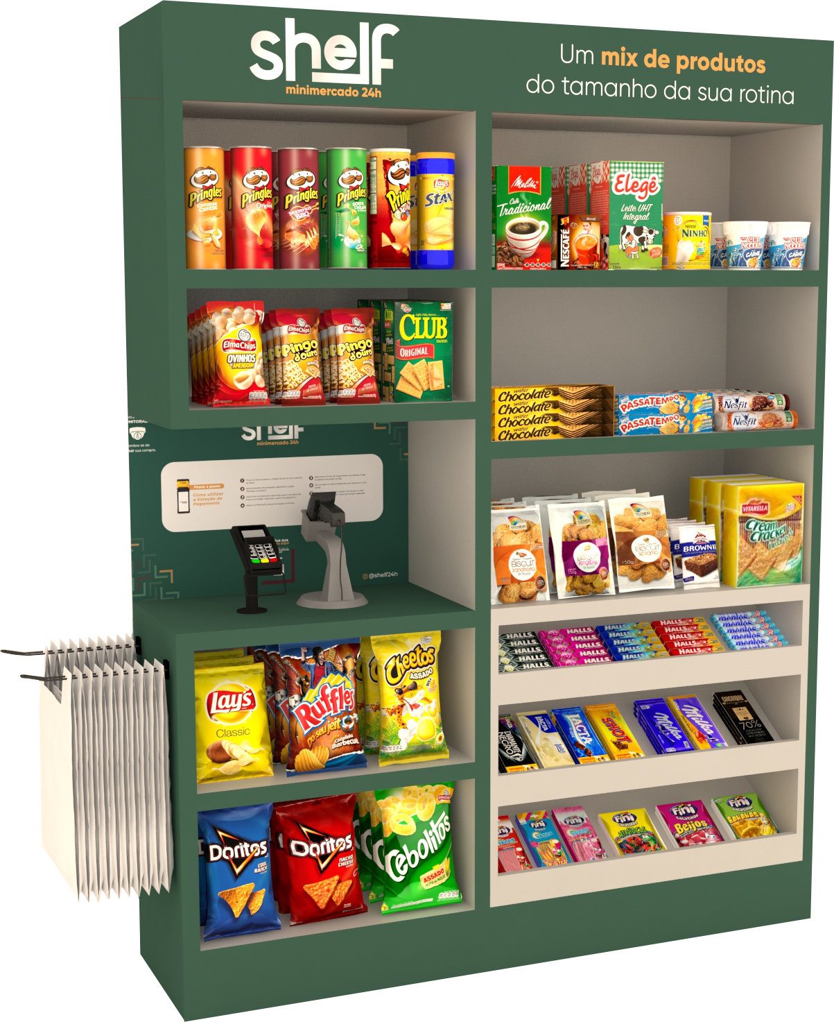 O mix de produtos do minimercado Shelf é ideal para as compras do seu dia a dia.