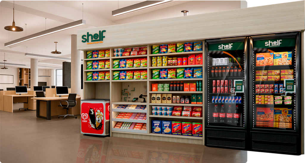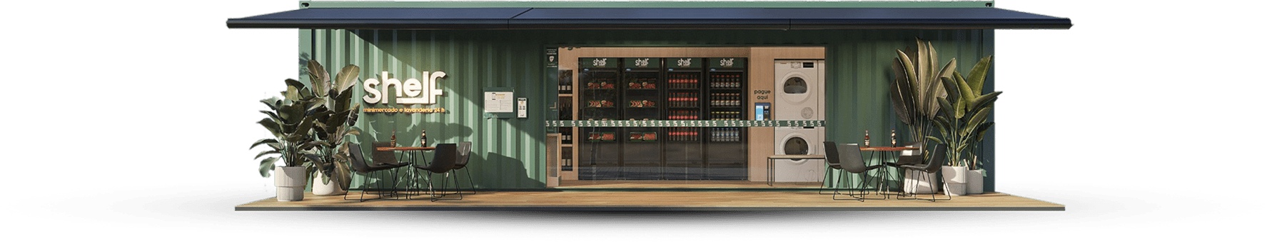 A Shelf é uma rede de minimercados autônomos que transforma qualquer espeço comum em uma solução prática e moderna. Tudo mais perto, tudo mais fácil.